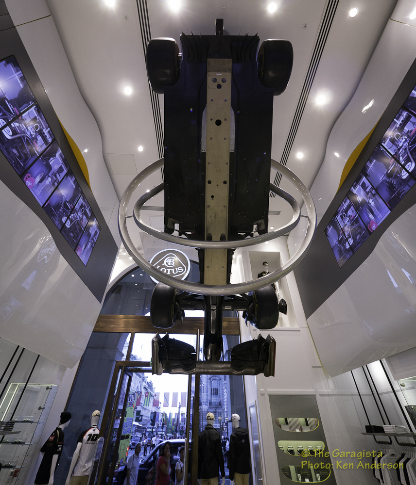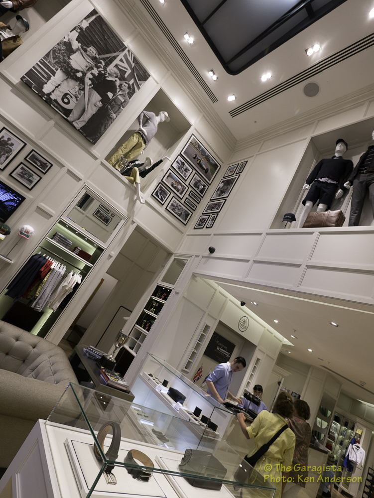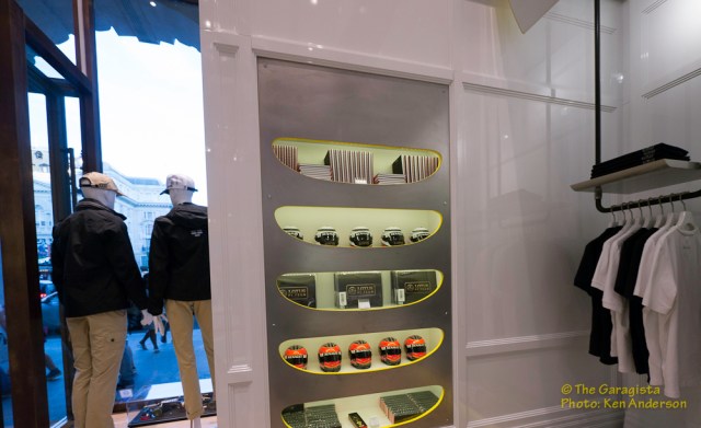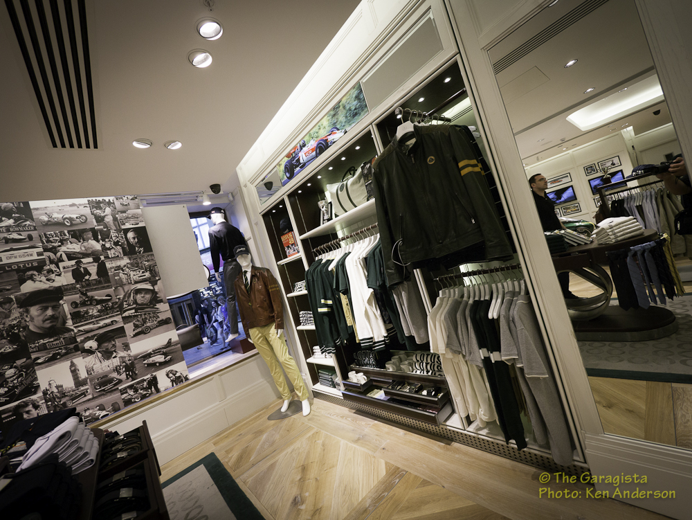 But this story is not entirely about the clothing line although it’s very impressive. This story is also about the actual store and the attention to detail found within the walls. Once you enter the store you find yourself below one of the latest Lotus Formula One cars.