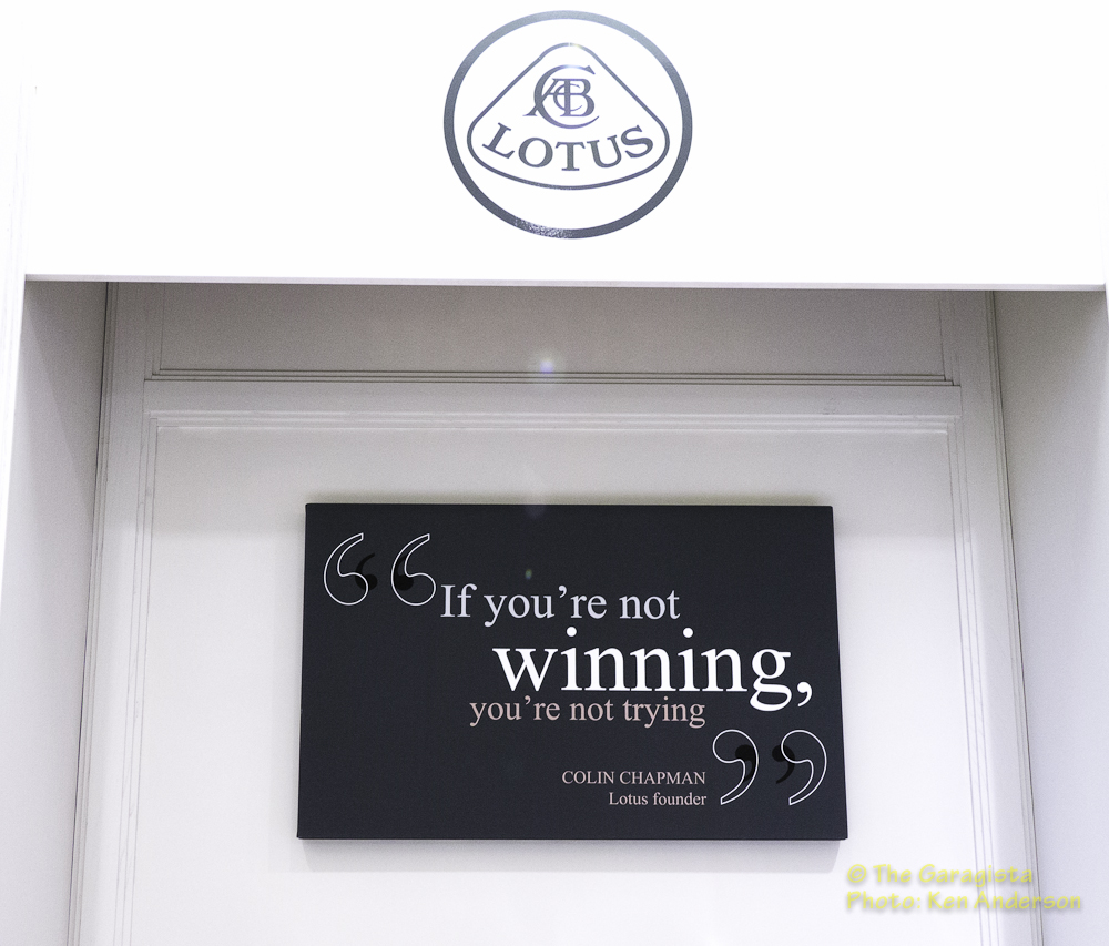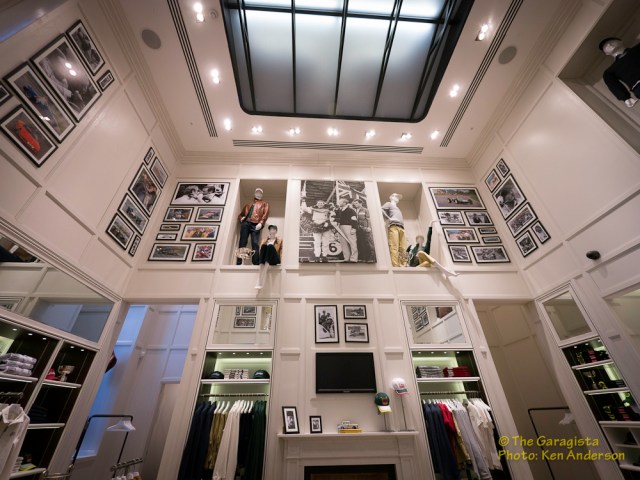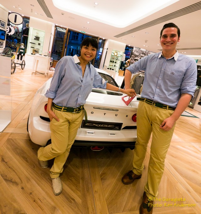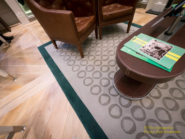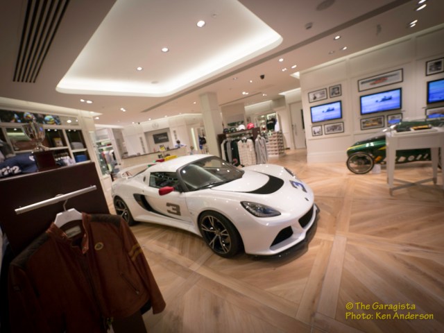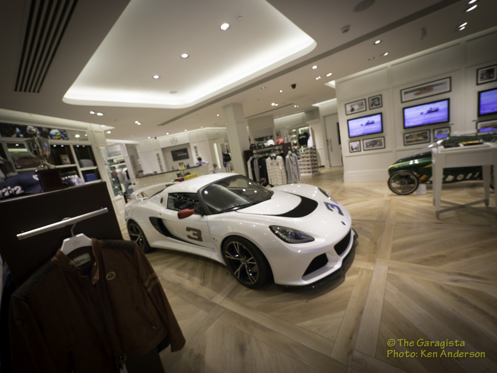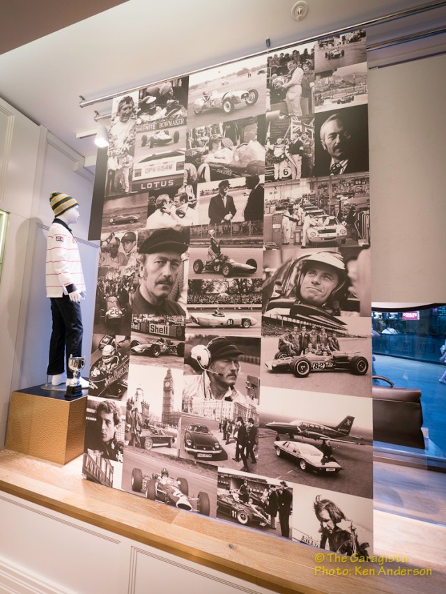 Everywhere you look there is reference to Lotus. Even rugs feature a Lotus logo theme. One detail the quickly captured my attention was the collection of photographs displayed throughout the store.