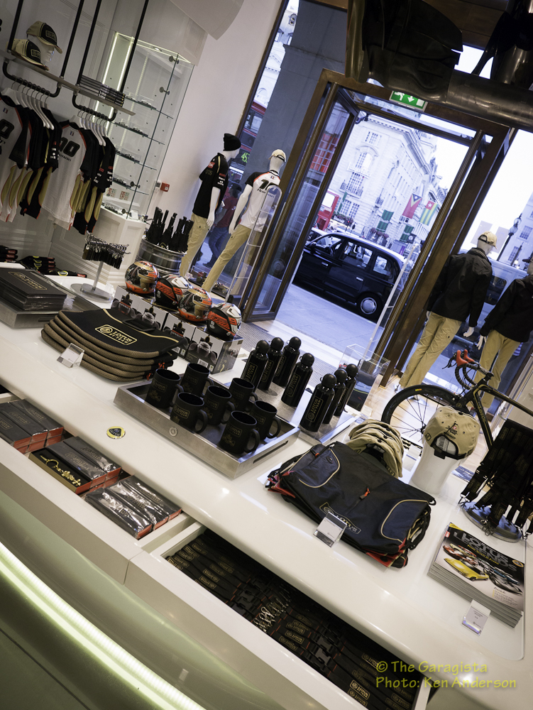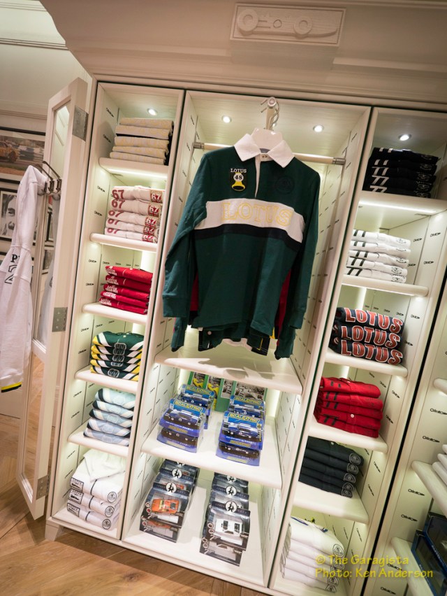 With products and merchandise priced at the higher end, especially for those of us in the USA considering the exchange rate, the quality of the merchandise impressive and is of the highest quality and should not be compared to inexpensive logoed T shirts found elsewhere. The selection of materials used in the group is definitely of the best quality. As throughout the Regent Street store, the attention to detail is also found in the clothing with detailed stitching and Lotus branded tags cleverly placed for recognition.