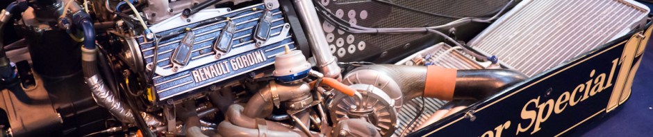 The Renault Gordini F1 Turbo V6 was a 1492cc powerhouse. Producing 900bhp to 1400bhp , it powered several teams in the 80’s including Lotus. Here we see the engine mounted in a 1983 Lotus 94T. The 90 degree V6,  named the EF1,  ran as much as 5.5 bar of boost. Notice the small turbine housing on the turbocharger, ideal for fast response. Later development of the Renault V6 F1 engine saw pneumatic valve springs employed that later became standard issue in all F1 engines.