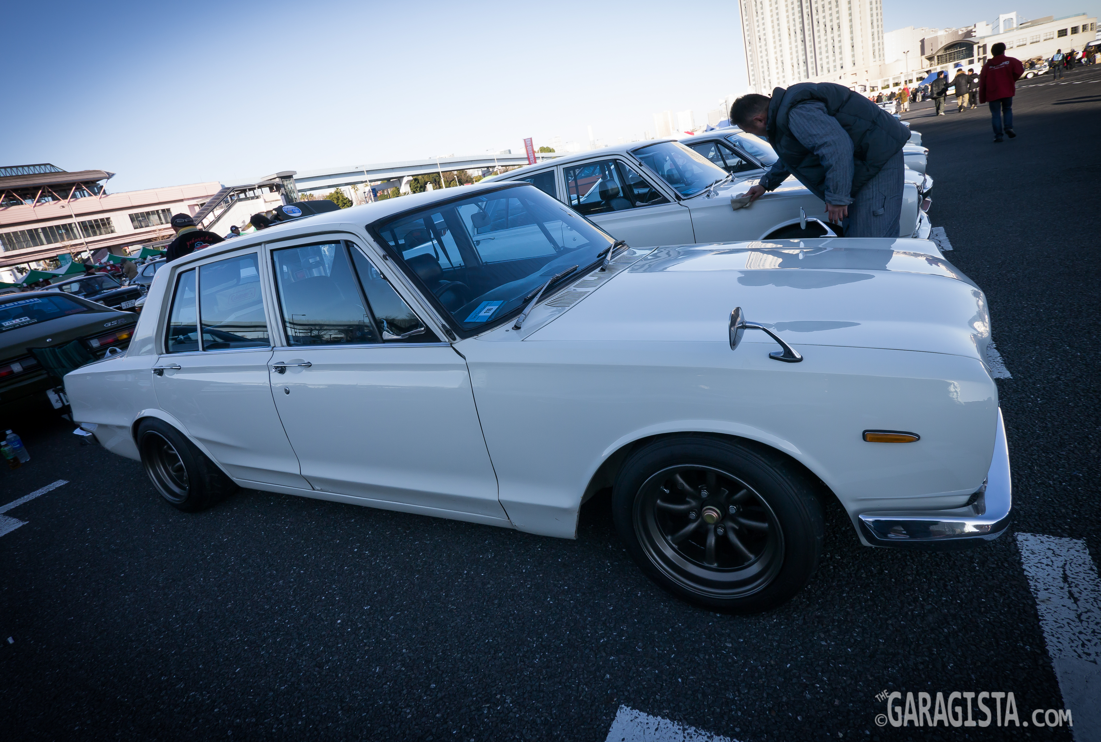 I wanted to make sure I was able to see as many cars as possible. This event is held for only one day so time was limited . One of the first things that I noticed was the number of early Nissan Skylines on display. The 1968-72 “Hakosuka” (Boxy Skyline) is everyone’s favorite Japanese classic and there were some fine examples to see. The Skyline has been Japan’s halo performance car for years competing internationally in various motorsport events with great success. It’s no surprise everyone knows about the car. For this installment, we’ll take a look at the Nissans at this years JCCA New Year Meeting.