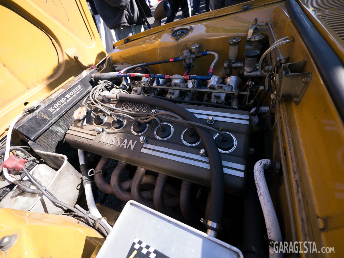This ’71 Skyline GT-X with its mundane appearance was the car for me. Narrow tires on period correct steel wheels looks perfect. There were many versions of the Skyline produced and the GT-X came equipped with L20 inline six cylinder engine.