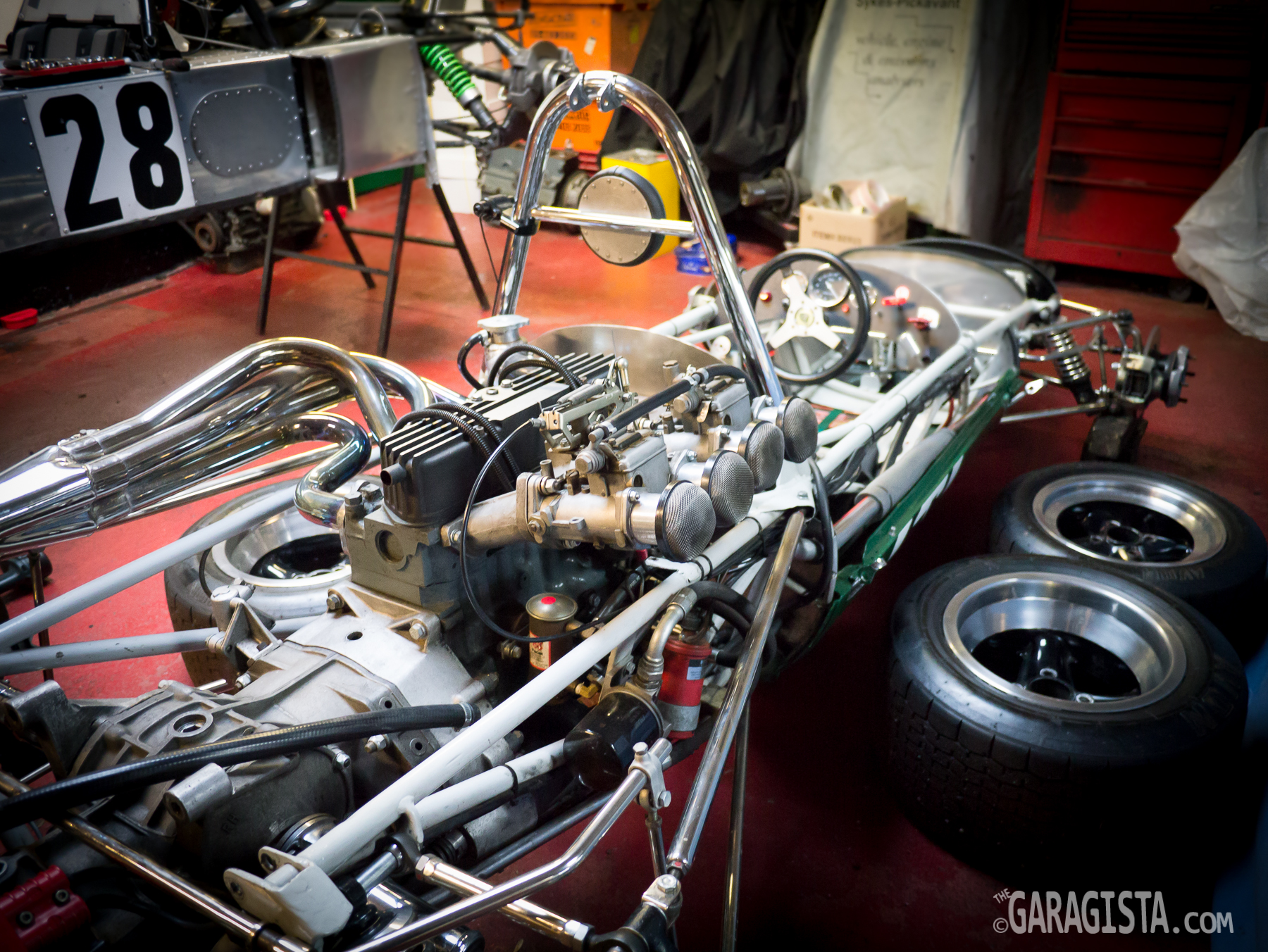 This early S1 26R  (Chassis no. 26/R-43) was in for recommissioning before heading over to auction. This car is one of approximately 97 26R’s and was a special treat to see. The car once raced in the USA but was returned to the UK in 1990 and has raced off and on since. The 26R was a special lightweight purpose built version of the Elan road car produced specifically for racing. They were and are still successful on the circuit.